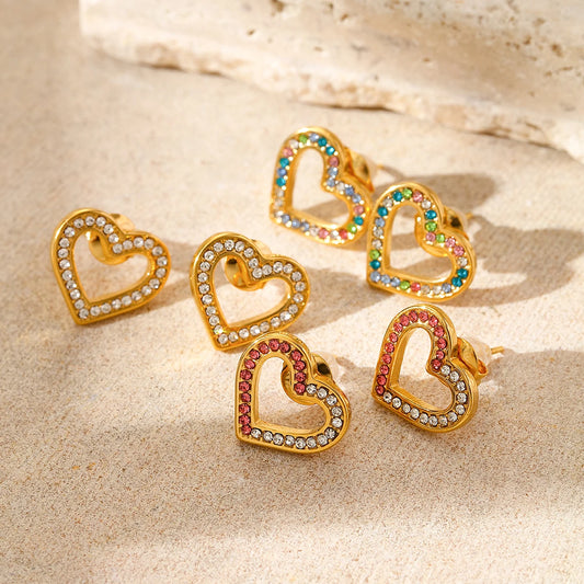Mia Colorful Heart Pendientes Earring Stainless Steel Gold Color